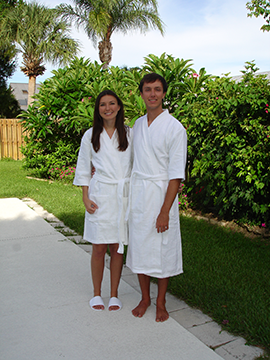 Enjoy this high quality 100% Cotton Diamond waffle material in a kimono robe. Julia on the left is wearing the kimono. We have sold out of the Diamond Waffle Robe. Quality made especially for us in Turkey.